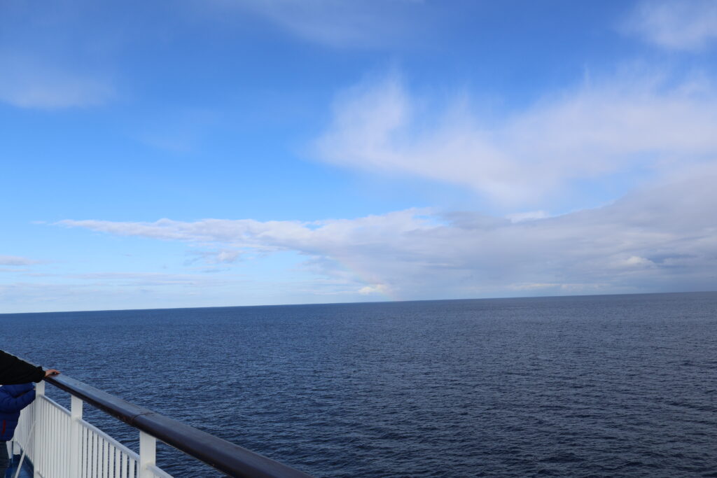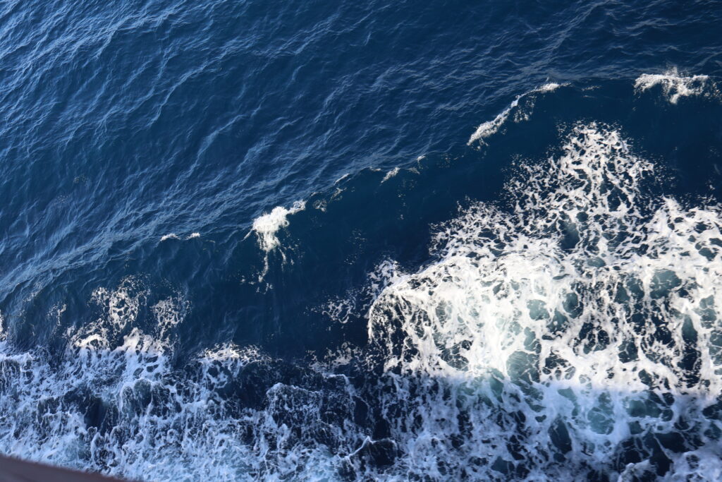 船から近くの海面を見てみると結構な速さで移動していることに気づきました。結構大きな船なのにこんなに速く動けるんだなと感心していた記憶があります。